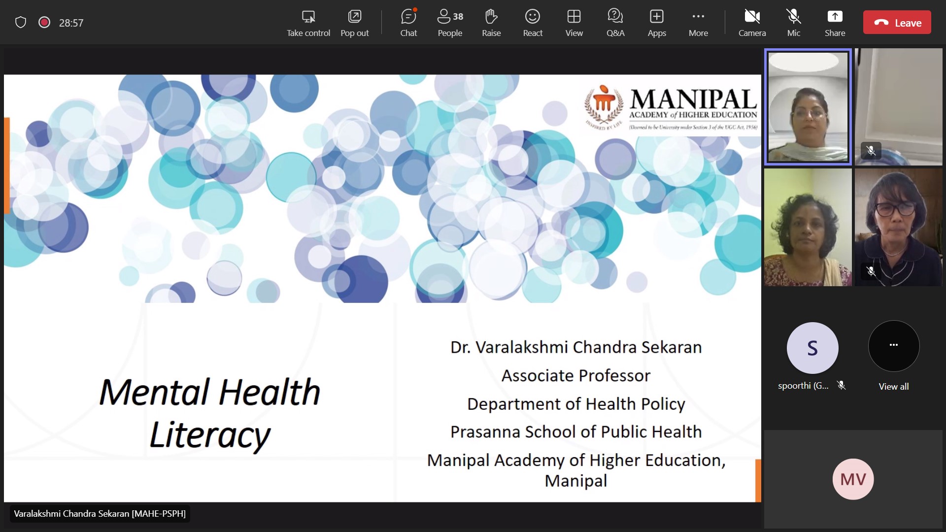 Manipal Health Literacy Unit (MHLU), Department of Social and Health Innovation (DoSHI),  Manipal and Asian Health Literacy Association (AHLA) jointly organized the Health Literacy Webinar – 4 on Dementia Literacy: Advancement and Future Research and Mental Health Literacy.''