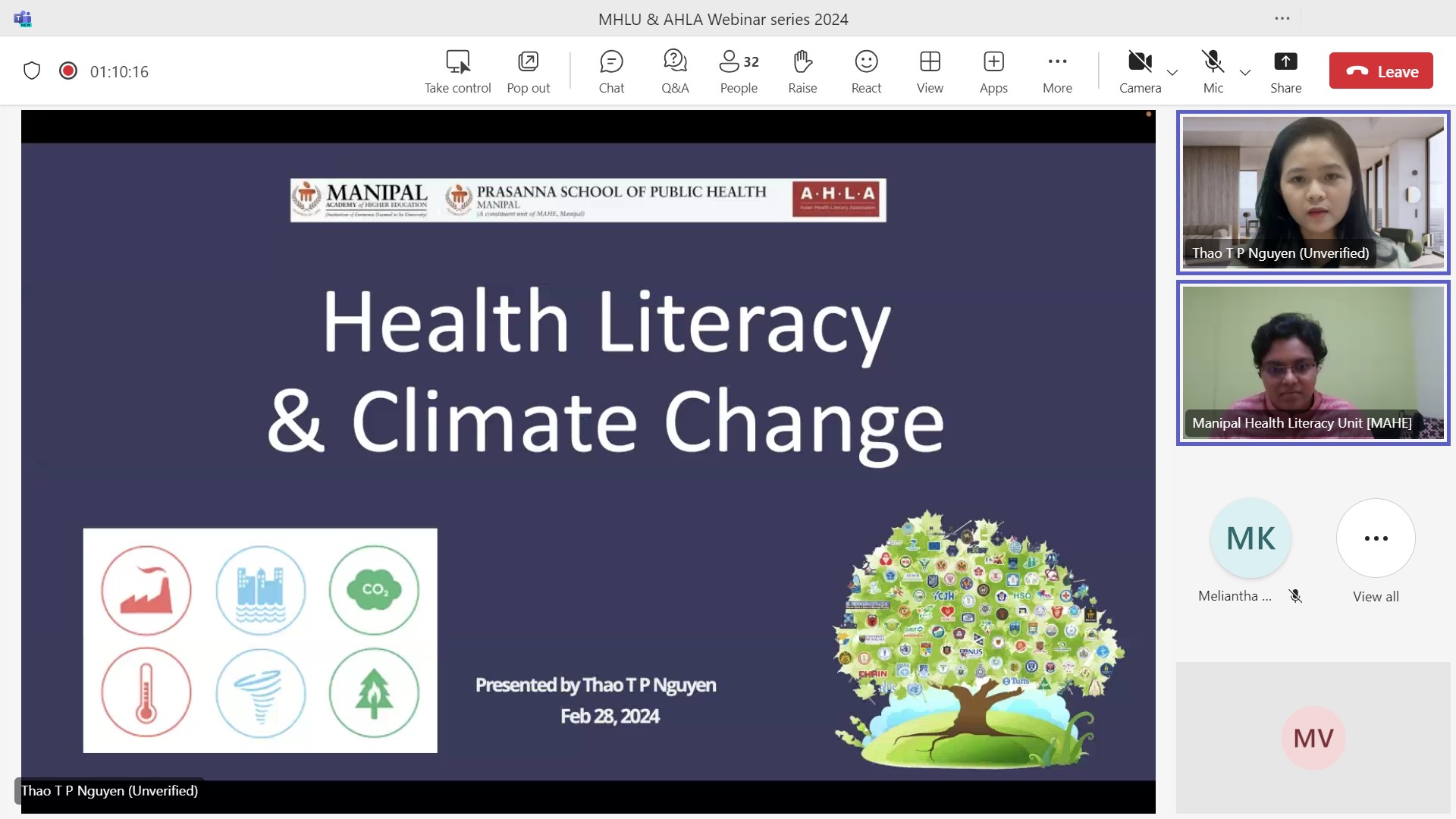 Manipal Health Literacy Unit Webinar Series – Ninth Health Literacy Webinar – “Health Literacy and Climate Change”: February 28, 2024