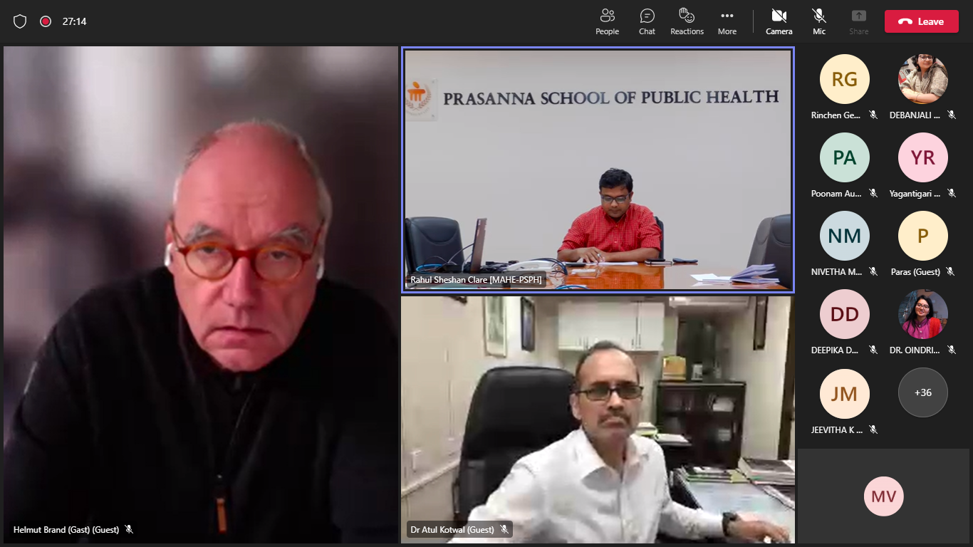 Maj Gen (Prof) Atul Kotwal, Executive Director, National Health Systems Resource Centre, Ministry of Health and Family Welfare, Govt of India was the speaker and Dr Sanjay Pattanshetty, Head of the Department, Department of Global Health Governance was the moderator. Various factors affecting climate change, air, water, food, environment, human health, eco-friendly renewable energies, wellness etc. were discussed.