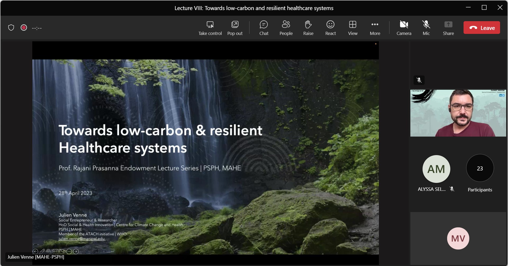 PSPH, MAHE organised Prof Rajani Prasanna Endowment Lecture Series on Climate Change and its Impact on Public Health – Lecture VIII – Towards Low Carbon and Resilient Healthcare Systems.
