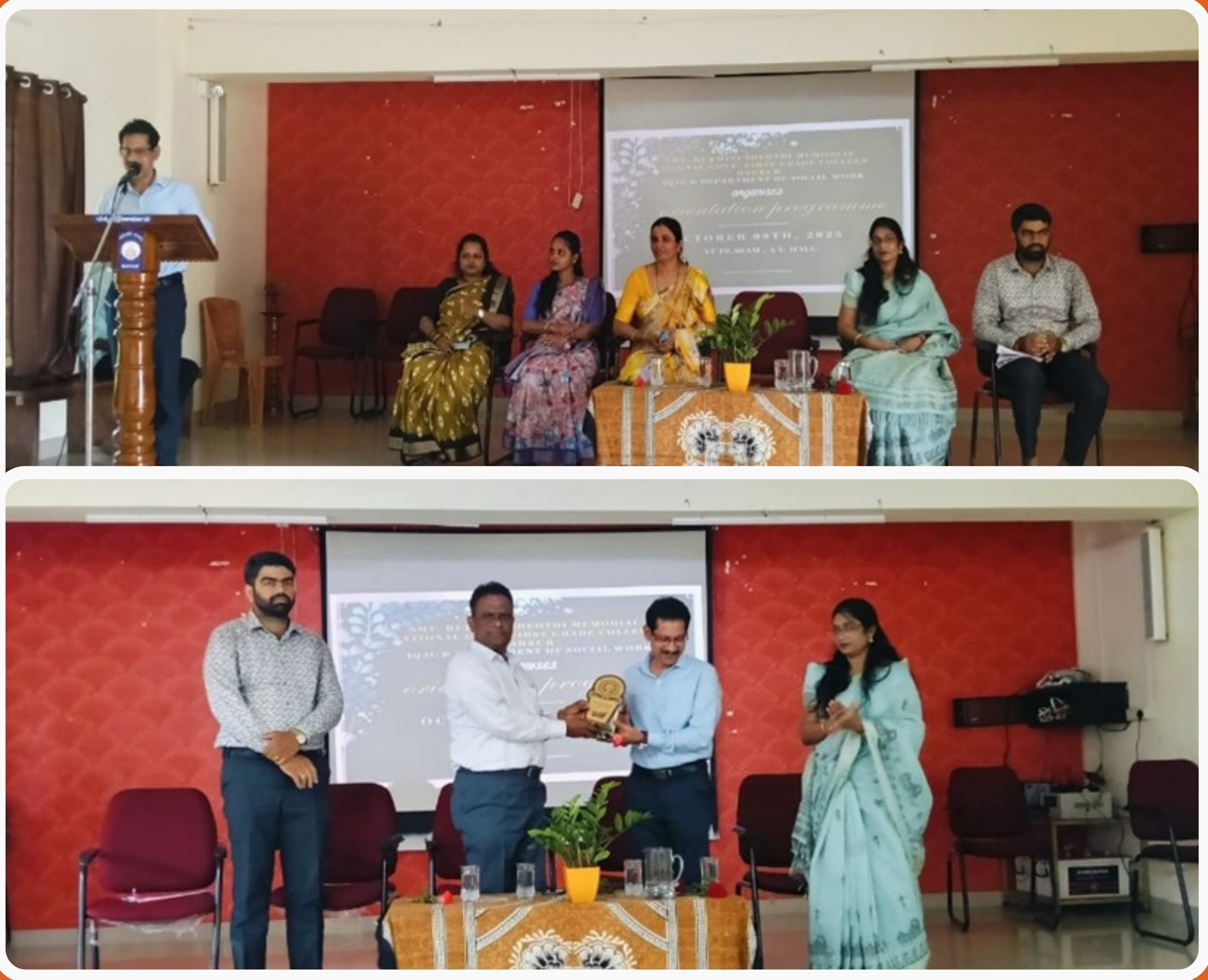 Department of Social Work, SRSM National First Grade College, Barkur, Udupi oraganised Social Work Orientation Session regarding Understanding the Nature, Scope, Specialisation, Job Opportunities, and Relevance of Social Work on October 08, 2025, in the Seminar Hall, SRSM National First Grade College, Barkur, Udupi.
