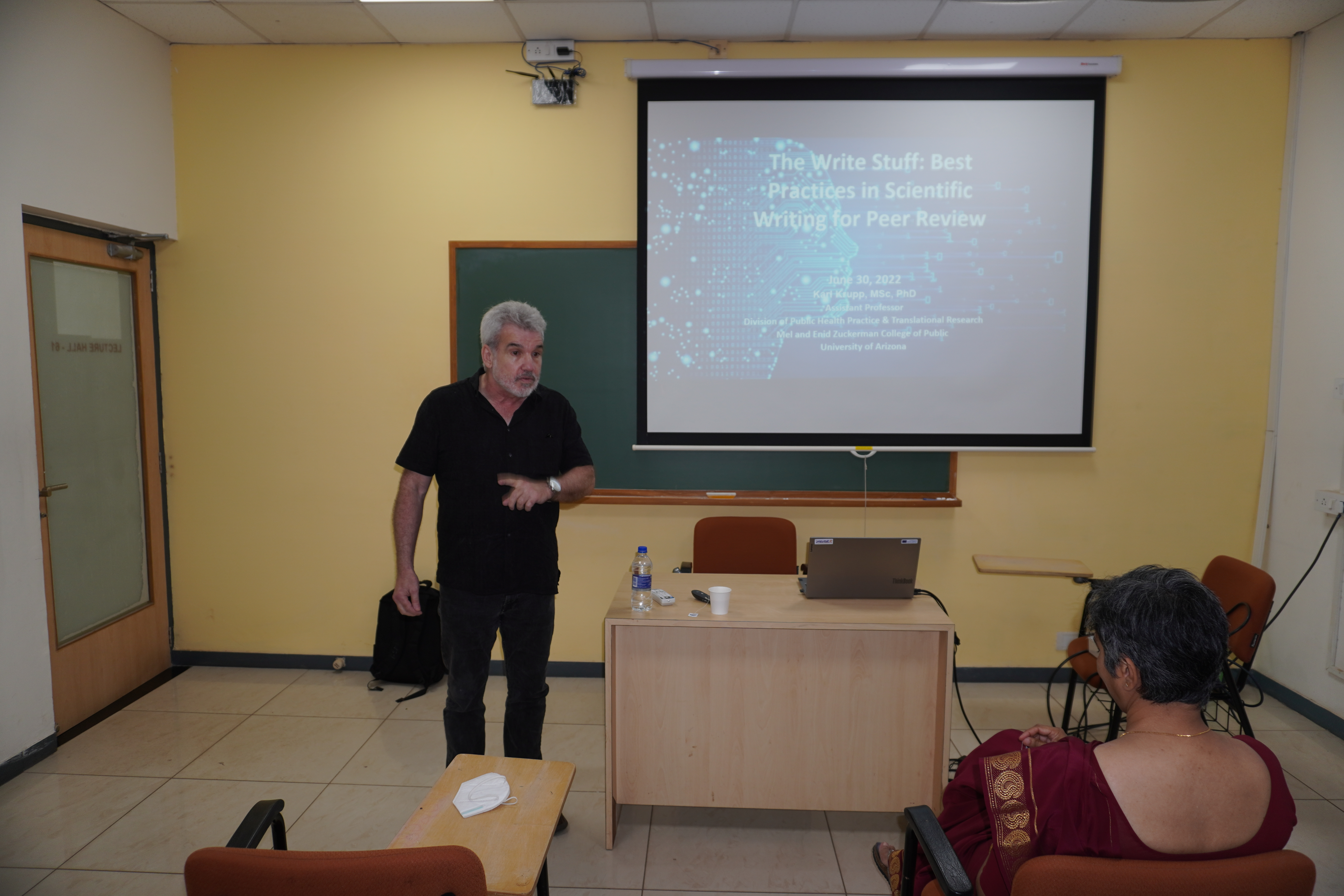 Dr Purnima Madhivanan (Tenured Associate Professor, Health Promotion Sciences, Mel and Enid Zuckerman College of Public Health, University of Arizona delivered a talk on “Introductory talk on Systematic Review and why one should be using past Research to inform current Research” and Dr Karl Krupp (Faculty, Mel and Enid Zuckerman College of Public Health, University of Arizona, Tucson, Arizona, United States of America) delivered a talk regarding “Effective Scientific Writing” for our MPH students.