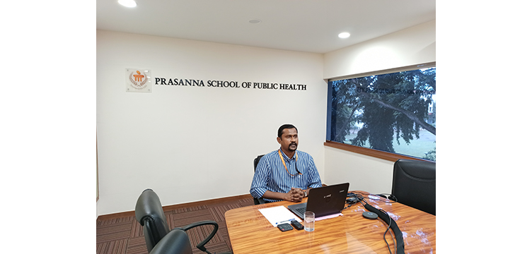 Mr. Teddy Andrews (Assistant Professor Selection Grade, MSW Program, Department of Global Health, PSPH, MAHE, Manipal) during the Webinar titled ‘Tribute to our Teachers’ Organized by the Research Cell of PSPH on September 16, 2020 through Microsoft Teams. Mr. Teddy Andrews (Assistant Professor Selection Grade, MSW Program, Department of Global Health, PSPH, MAHE, Manipal) was the MC for the Webinar. Dr. Asha Kamath (Associate Director, PSPH; HOD, Department of Data Science, PSPH; MAHE, Manipal), Dr. Arathi Rao (Coordinator, MPH Program, Department of Health Policy, PSPH; Coordinator, Manipal Health Literacy Unit, PSPH; MAHE, Manipal) were the speakers for the webinar. PSPH Students participated in the program and expressed their love, care, affection towards their teachers through words and by singing songs. Faculty, Staff, Researchers, Students of PSPH, MAHE, Manipal participated in the Webinar.