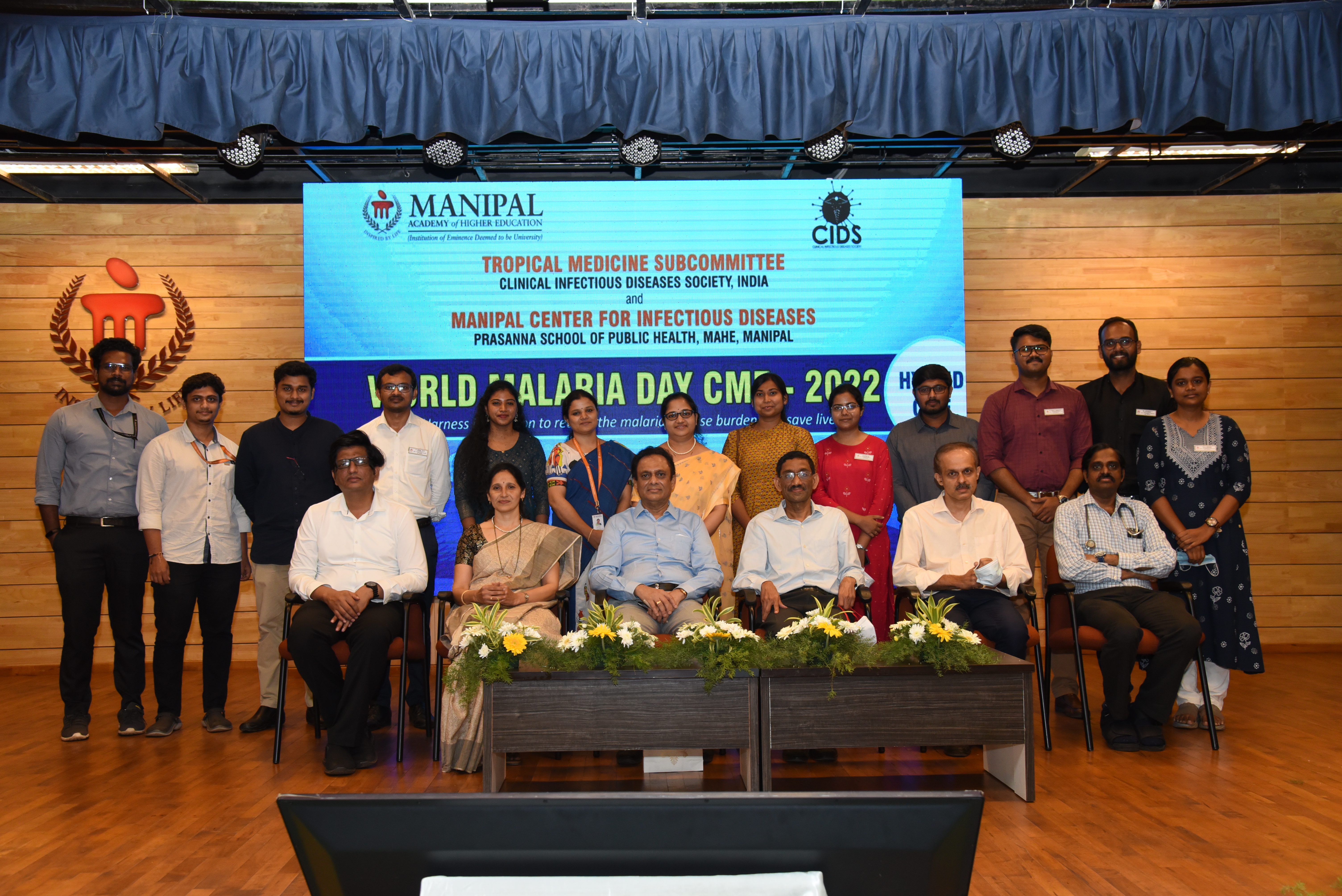 World Malaria Day CME (Continuing Medical Education) was a hybrid event jointly organised by Clinical Infectious Diseases Society, India and Manipal Center for Infectious Diseases, PSPH, MAHE. The programme had resource people from overall  India and discussed topics including treatment of malaria and mixed infections, epidemiology of relapse, treatment efficacies of primaquine and tafenoquine, radical cure and role of G6PD in radical cure of malaria, Issues such as morbidity and mortality data in India, importance of surveillance, use of technology, vector control and challenges of asymptomatic malaria, ongoing research on new molecules for malaria treatment and vaccine.