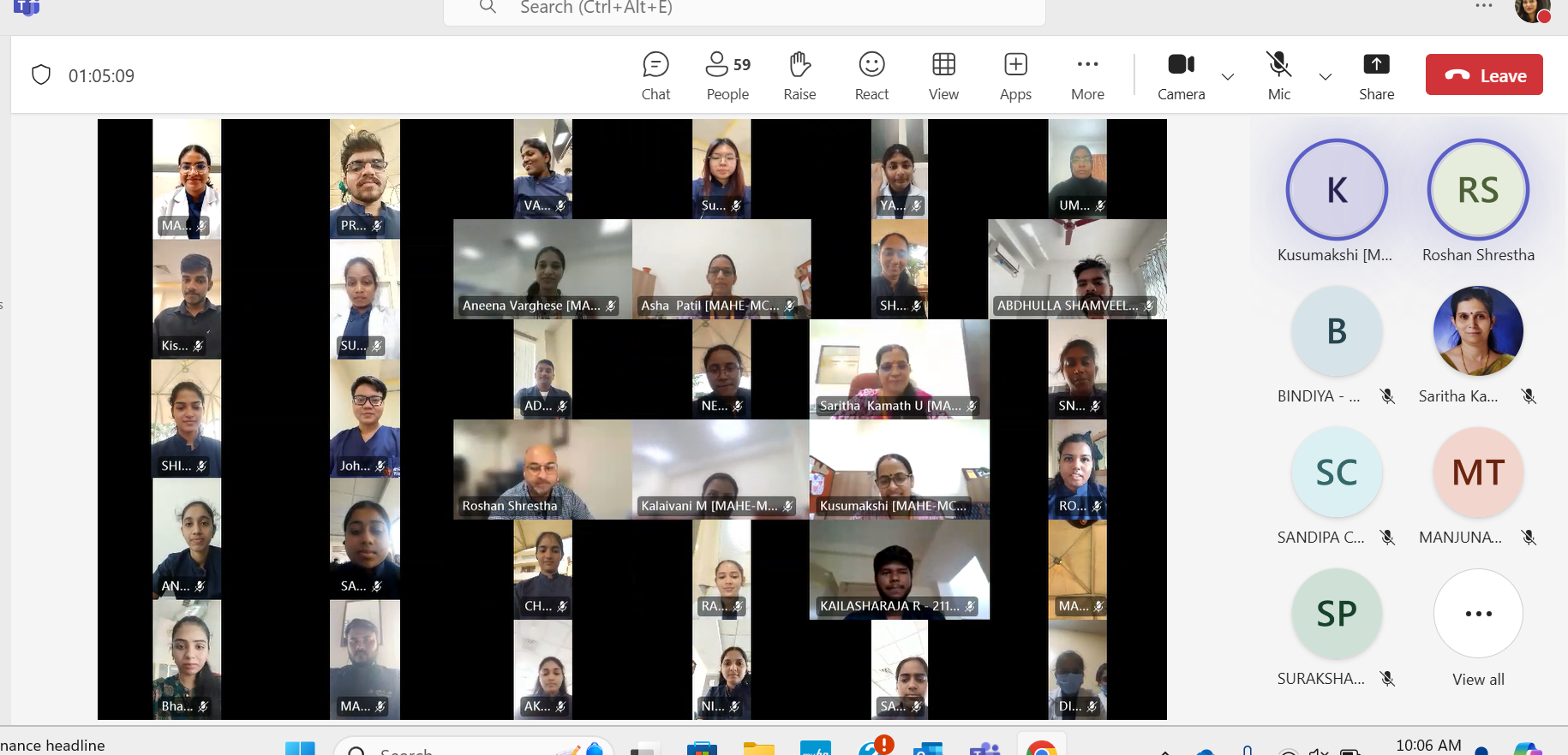 Department of Medical Laboratory Technology, MCHP, MAHE, Manipal conducted a Journal club presentation. MLT Alumni, Dr. Roshan Lal Shreshtha, Head of Translational Medicine and Therapeutics Group at Developmental Therapeutics Branch in National Cancer Institute, NIH, Bethesda, USA delivered a presentation on "Selecting a Research Topic and Preparing a Research Protocol" for UG and PG students on 26th October 2024