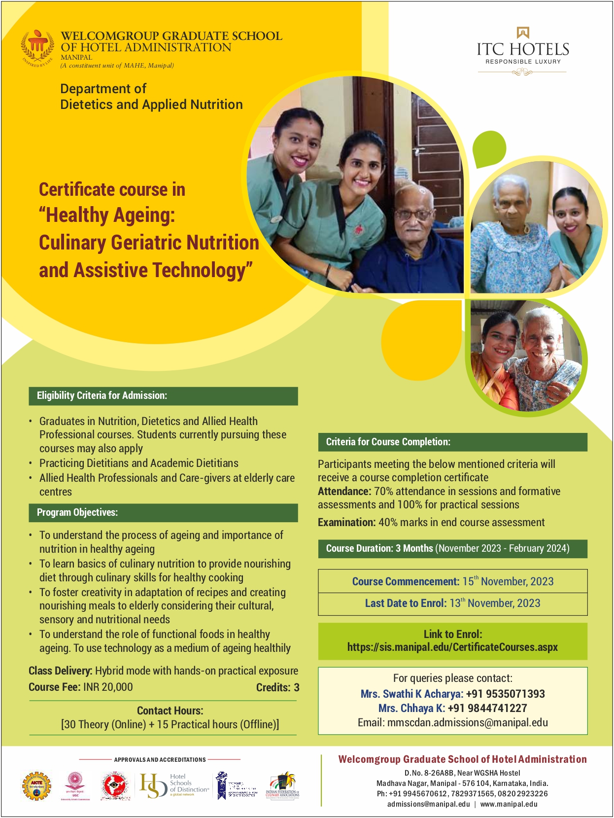Certificate Course in "Healthy Ageing: Culinary Geriatric Nutrition and Assistive Technology"!