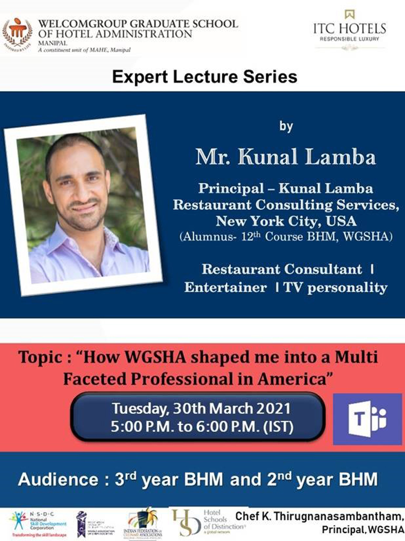 • Virtual cooking demo and lecture on "Food Tourism in India" by Dr. Chef Thiru for School of Hospitality Business Management